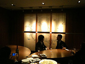 仏・ニースの1ツ星レストラン「KEISUKE MATSUSHIMA」のオーナーシェフ松嶋啓介氏がプロデュースする、原宿・東郷神社に隣接するフレンチレストラン「Restaurant-I (レストラン アイ)」の壁に川上 俊氏の作品が展示されている。