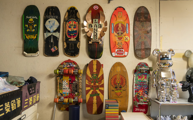 HAROSHI うちのおじいさんがなんでも自作する人で、よく一緒にいろんなものを作っていました。小さい頃は体が弱くて入退院を繰り返していたこともあって、夏休みの自由研究で提出する工作が自分の見せどころ、みたいな感じで(笑)。中学生になるとすっかり元気になって、部活の軟式テニスを一生懸命頑張りました。スケボーを始めたのは中学2年か3年のとき。当時、駒沢公園の近所に住んでいたんですけど、友達の間ではストリートバスケの次にスケボーが流行ったんです。