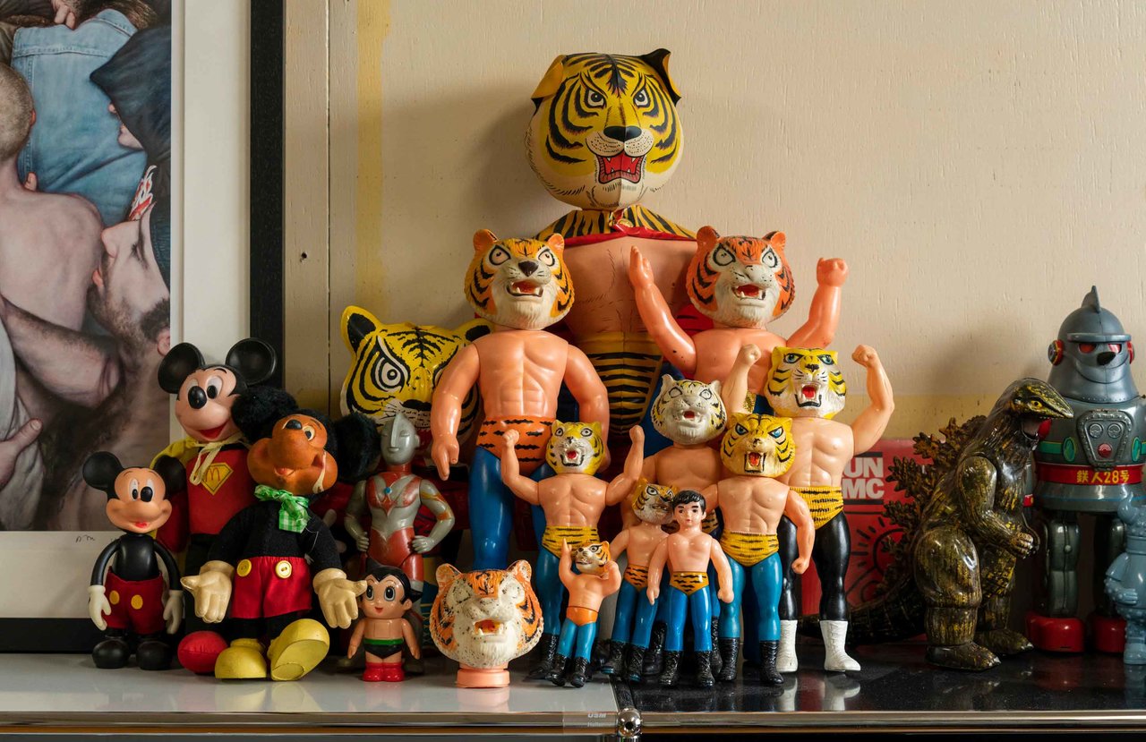 ソフビ好きというHAROSHIのスタジオ内のオフィスには、ヴィンテージのスケートボードやBE@RBRICK1000% とともに、昔からコツコツ集めているというタイガーマスクの古いソフビ人形が飾られていた。『GUZO』と同時期に開催されたロンドンでの個展『RISE ABOVE』では、古いソフビ製キャラクター人形の欠けた顔や腕を彫刻で再現した作品群を展示。パスヘッドの紹介で仲良くなった廣田彩玩所の協力により、キングゴリラ獣とのコラボレーションというビッグ・サプライズも実現した。この頃からトイ・カルチャーにおいてもHAROSHIの名前は広く知られることになった。