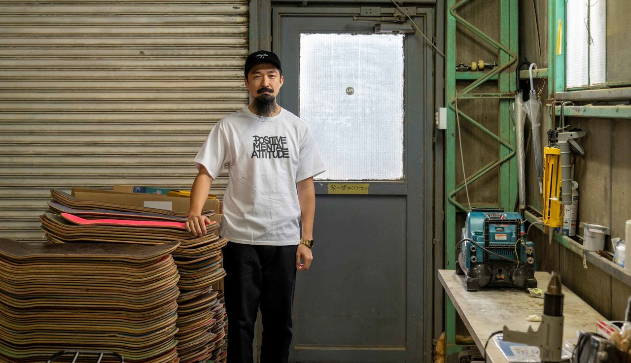 取材場所は、現在のHAROSHIの制作拠点である、東京某所の工場跡を利用した「studio PMA」。聞けば、遊園地跡地にできたスケートパーク目当てに、約10年前、この地に引っ越してきたというからスケート愛は本物だ。スタジオ内には練習用のミニランプと山積みになったスケートボード。その一角にある工房ブースの外壁に掲げられた巨大なB.A.Dの文字は、彼のポリシーのひとつである「BUILD & DESTROY」を表したものである。