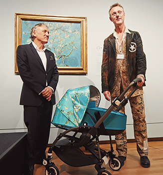 先の2月初旬、各国のプレスを招いたスペシャルディナーがヴァン・ゴッホ美術館で開催された。ロングディナーテーブルを配した美術館の1階はコラボレーションのテーマであるアーモンドの生花が飾られ、アーティスティックで神秘的な雰囲気の中、ヴァン・ゴッホの作品よりインスピレーションされたメニューが続々登場。ゴッホの甥の孫にあたるウィレム・ヴァン・ゴッホ氏と歓談しながら、ゴッホの世界観を存分に味わえる素敵なナイトとなった。そして、このスペシャルな夜の主役がバガブーのベビーカーだ。