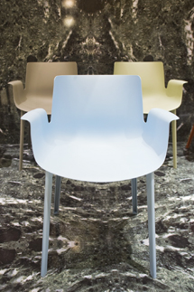 サローネ前から評判の高かったピエロ・リッソーニ氏が手がけたアームチェア「PIUMA(ピューマ)」。羽という名をもつその椅子は、カーボンファイバーで強化された熱可塑性ポリマーを使って、背もたれや座面の厚さが2mm以下、全体の重さが2.2kgという超軽量を実現。