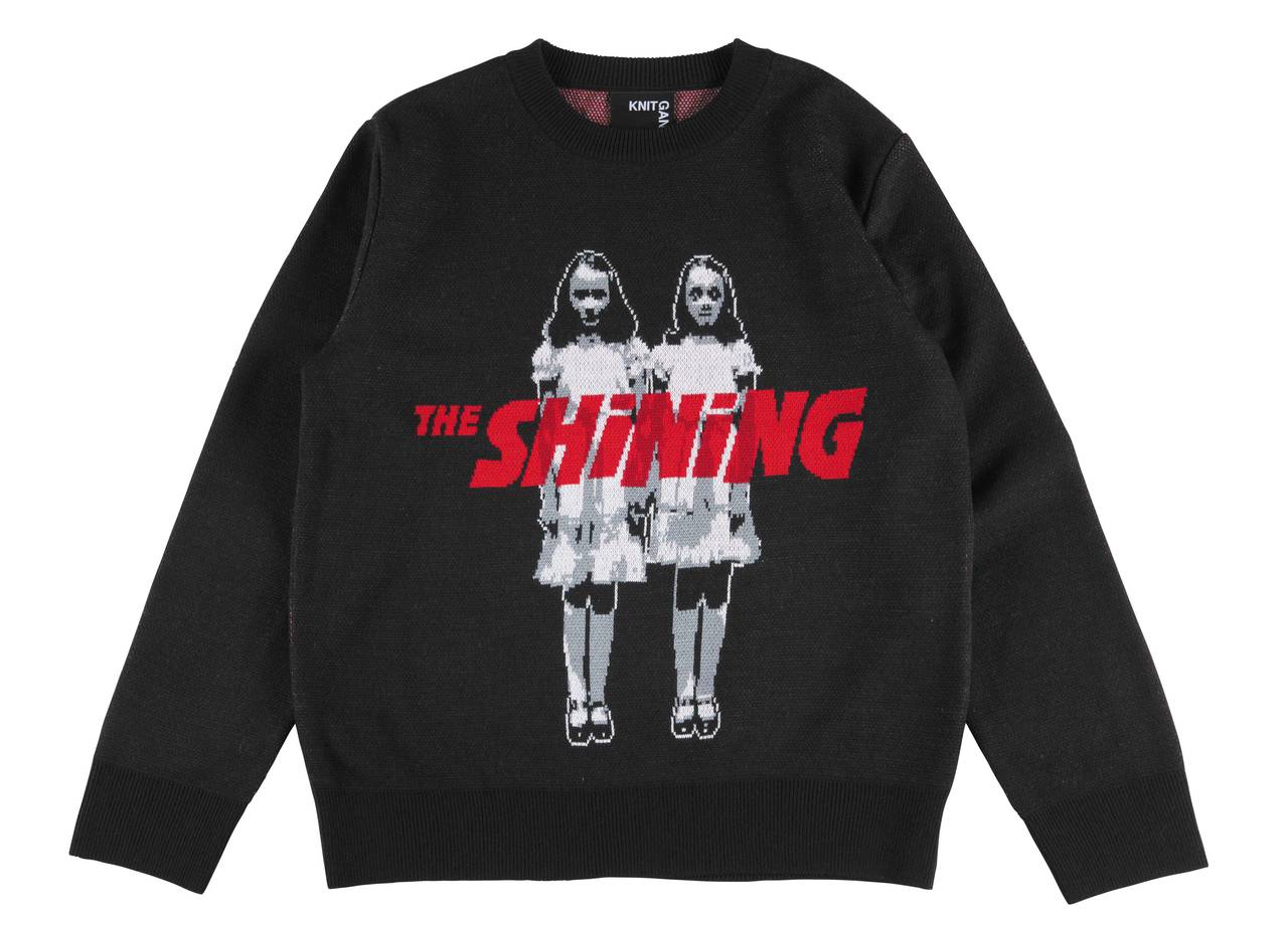 KNIT GANG COUNCILでは、本作に登場するオーバールック・ホテルに敷かれた「カーペット」の柄をニットブルゾン、ダニーがホテル内で目撃した「双子の少女」をクルーネックセーター、ニットスカーフとして再現。映画の中で鮮烈な印象を残すモチーフだけに、キューブリック好きにはたまらないアイテムとなっている。