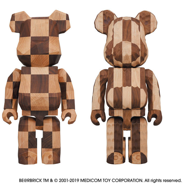 カリモク社製木製400% BE@RBRICK fragmentdesignに新作が登場。1品ずつ熟練した職人のハンドメイドで仕上げられた究極の逸品。各全高約280mm。各22万円(税別)。