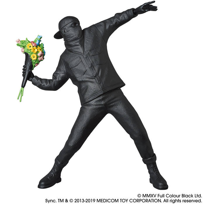 BANKSYのグラフィティにインスパイアされたFLOWER BOMBERのスタチューにGESSO BLACK Ver.が登場。全高約360mm。5万8000円(税別)。