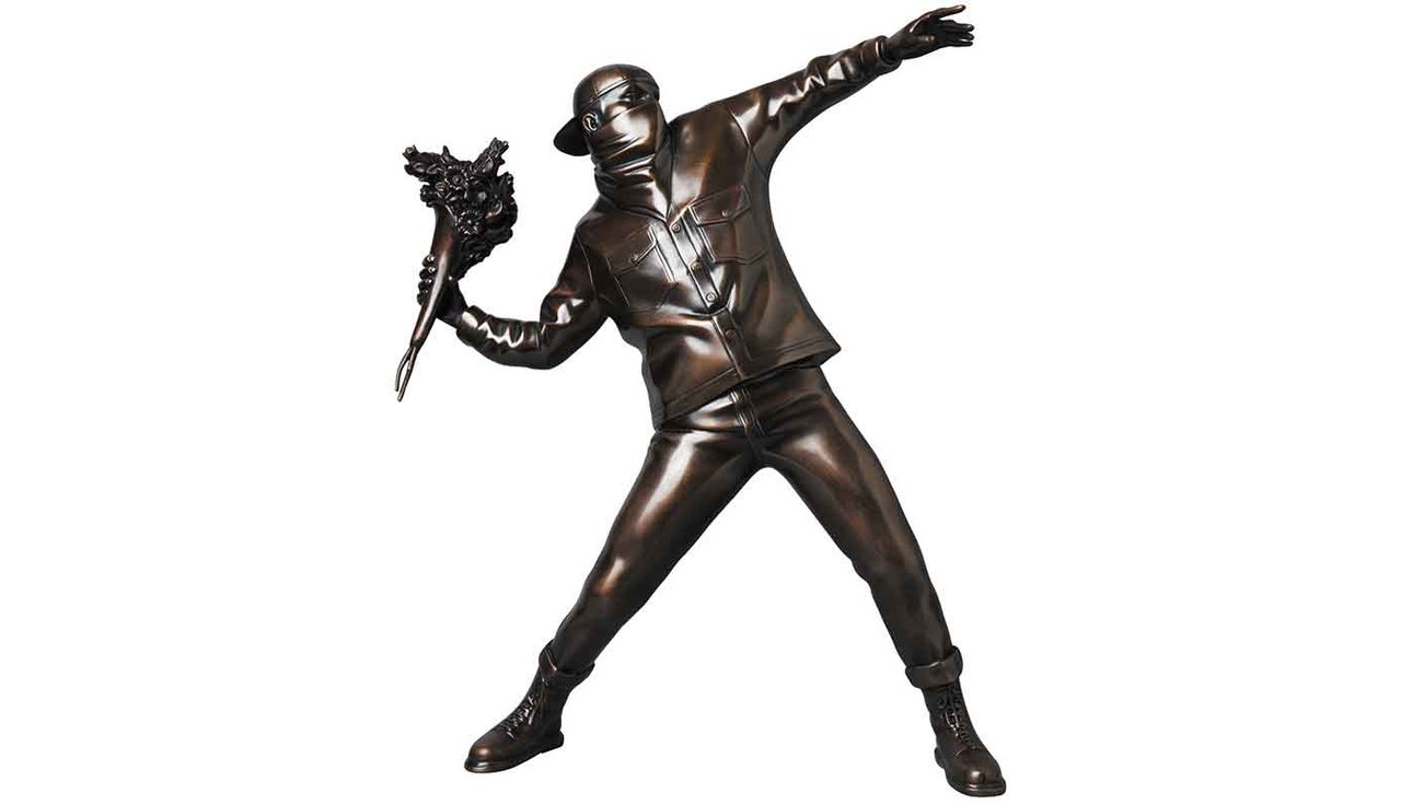 BANKSYのグラフィティにインスパイアされたFLOWER BOMBER にBRONZE STATUEが登場。全高約360mm。60万円(税別)。
