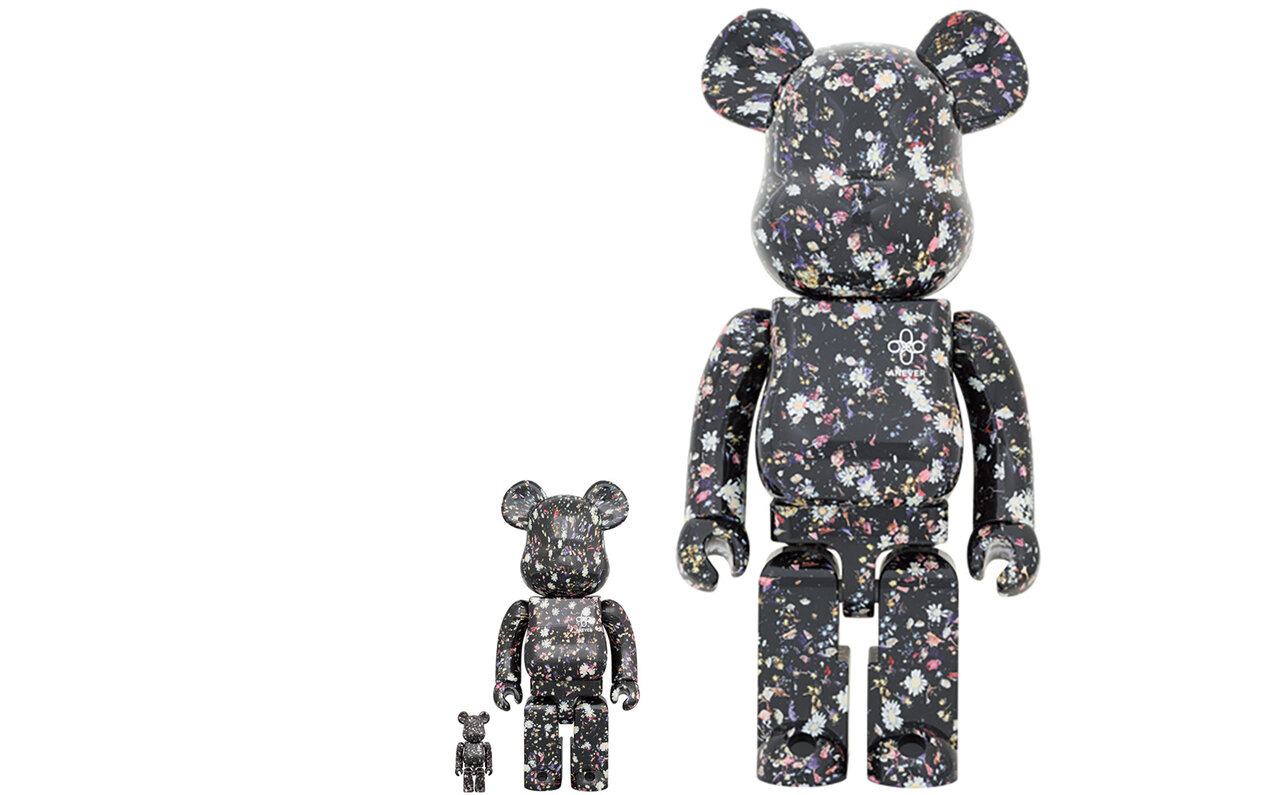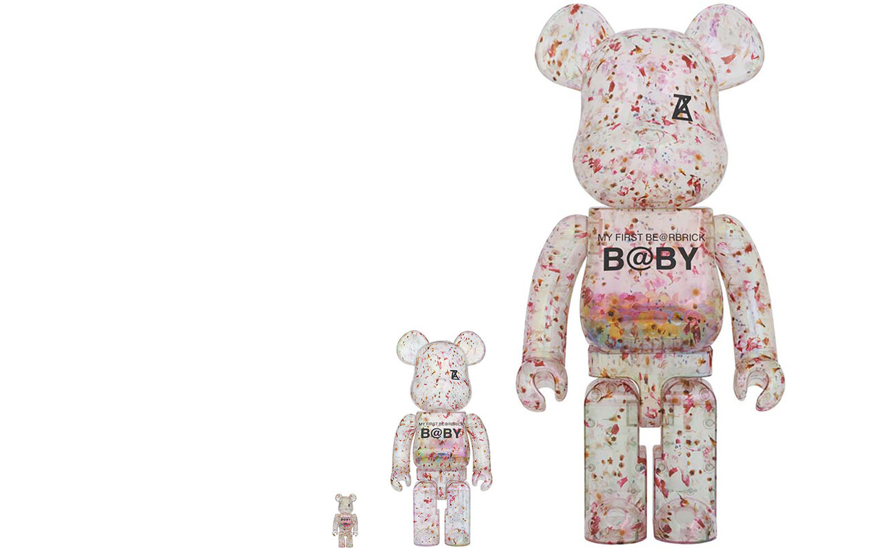大好評のMY FIRST BE@RBRICK B@BYシリーズにANREALAGE Ver.が登場する。MY FIRST BE@RBRICK B@BYはボディにビーズを内蔵し、振るとガラガラと音がする人気モデル。今回は透明のボディを使用し、アンリアレイジの定番である本物の花をドライフラワーにして樹脂の中にとじこめた花柄模様をウォータープリントで表現している。