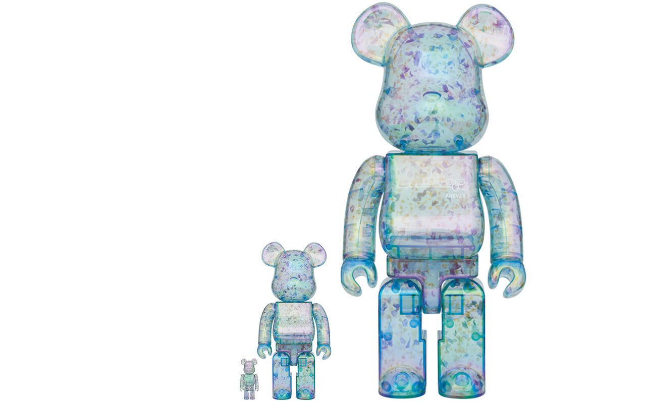 森永 コロナで日常が非日常に変わっていく中、積極的に4タイプのモデルを発表しました。まずは、花の一瞬を永遠に閉じ込めるとコンセプトを掲げて、樹脂シリーズをANEVER(アンエバー)というブランドとして始動し、ANEVER X BE@RBRICKの第一弾~第三弾を発表しました。レインボーメッキ仕様の水転写で表現した、樹脂の花柄模様のモデルです。
