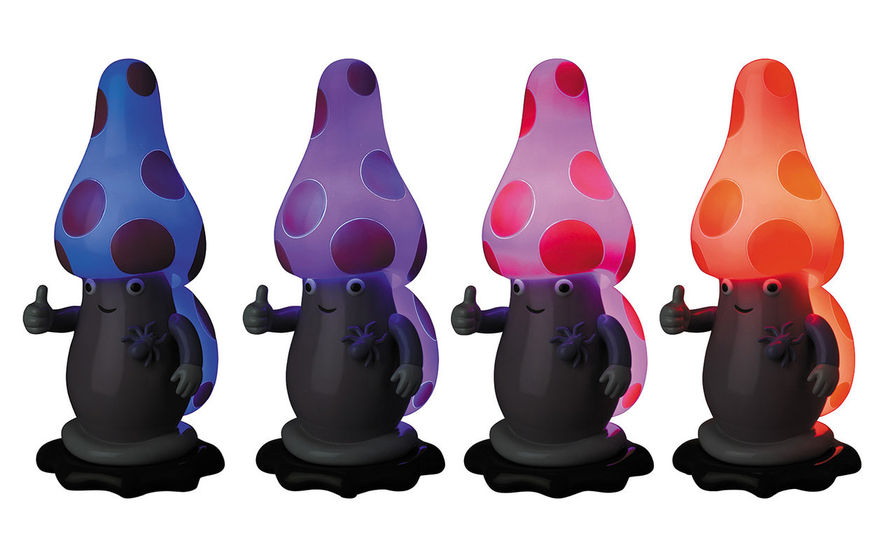 今回発売される「UNDERCOVER Mr. Buttons lamp」はキノコのようなキャラクターのルームランプで、傘にあたるランプ部分は幻想的に4色に発光。キュートでダークなルックスがUNDERCOVERの世界観にマッチした、これまでにないライフ・ギアの登場だ。