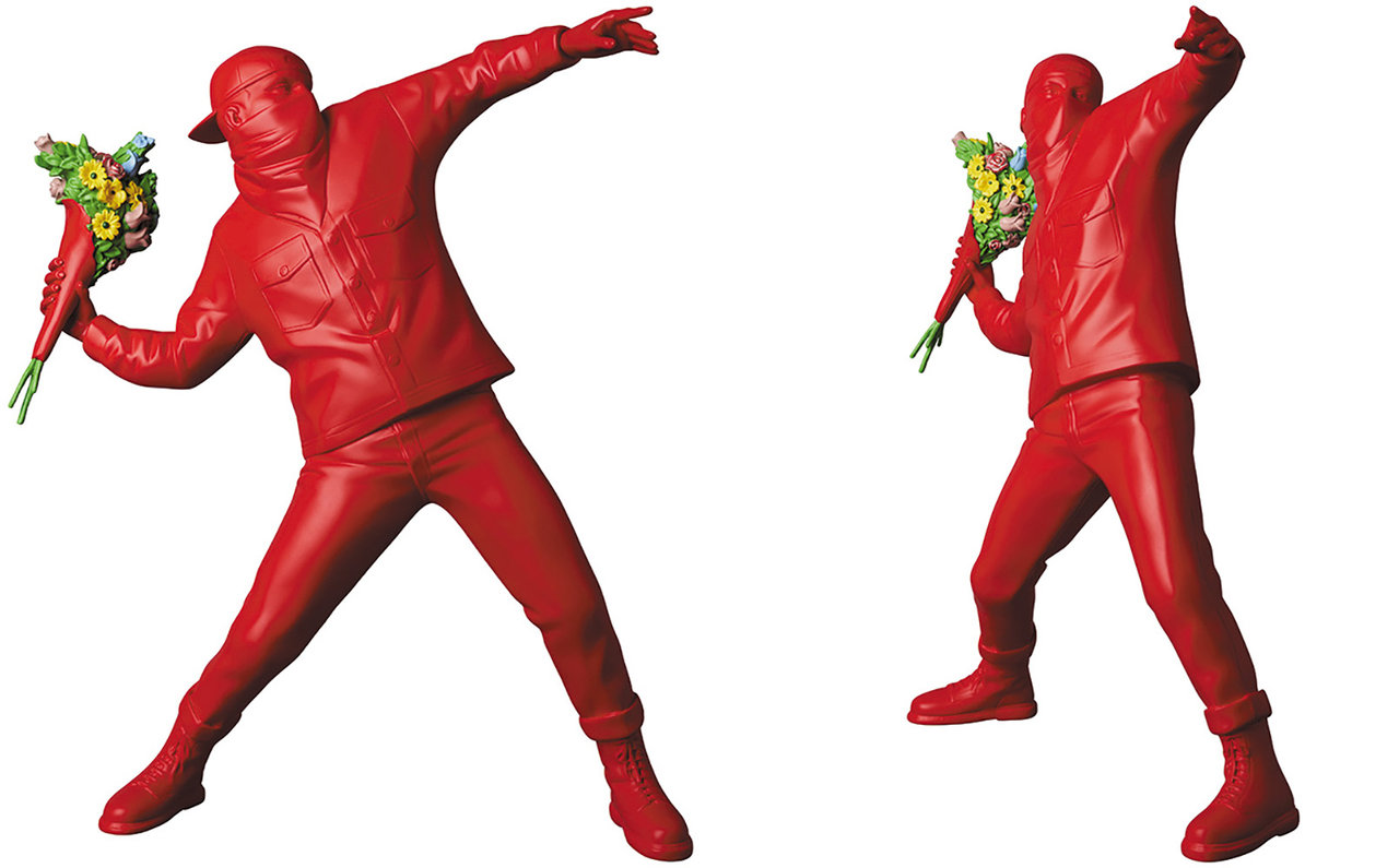 BANKSYのグラフィティにインスパイアされたFLOWER BOMBERのRED Ver.スタチュー。全高約360mm。5万円(税別)