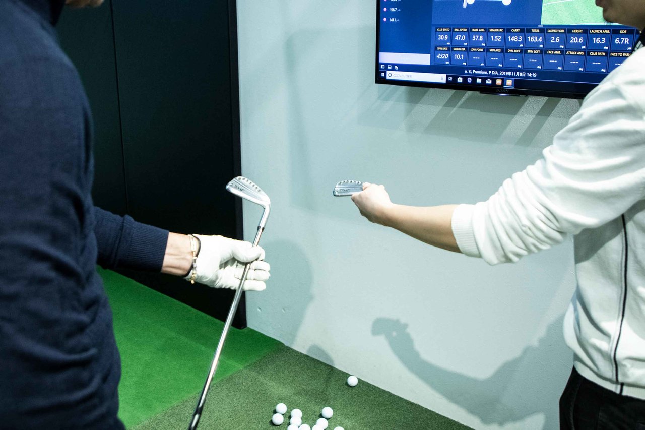 早速フィッティングを開始することに。PXGのスタジオにはフィッティングの専門家が在籍し、徹底した診断を行ってくれる。まずは、試打スペースで軽く打ってもらう。今回はまず7番アイアンの試打を行い、PXGのヘッド数種、さらにシャフトも変えつつ森岡氏の癖をチェック。コンピュータに現れる左寄りの打球が、様々なトライアルから徐々にまっすぐへと変化していく様は、まるで魔法のようだ。