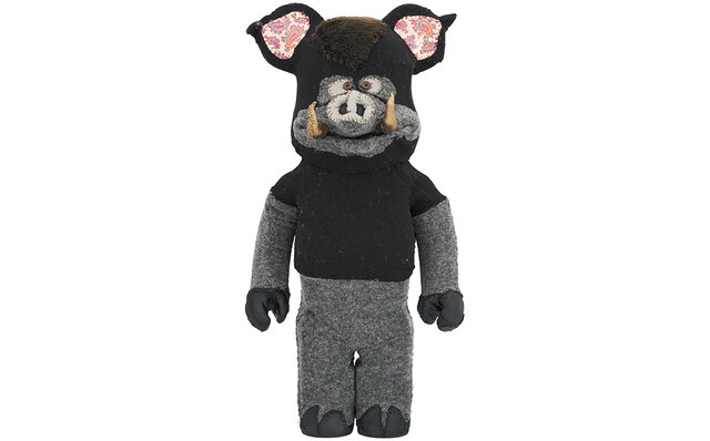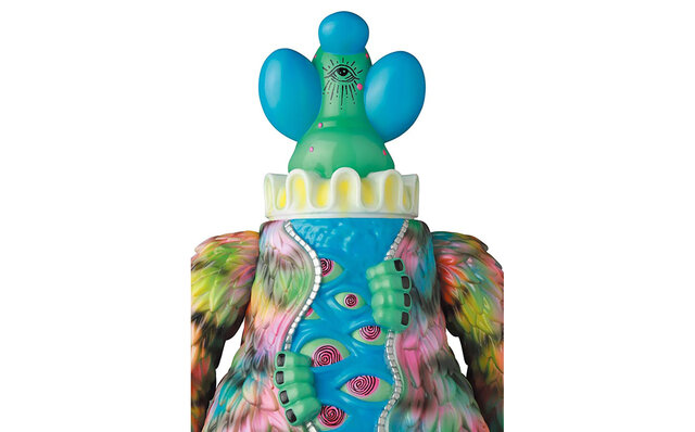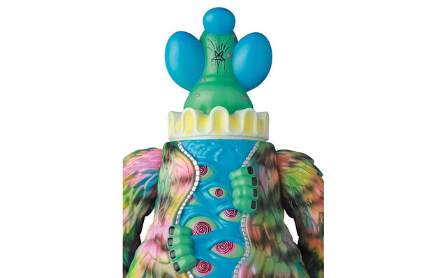 原宿をベースに展開するMILKBOYのトイブランド、MILKBOYTOYS。“架空のホラー遊園地の住人。中を見たものは誰もいない……”という設定のもとに誕生したキャラクター「IT BEAR」はメディコム・トイにより2017年からソフビ、BE@RBRICK、VAGなど広く展開。今回は3体とも見た目は同じようなカラーリングだが、マスクを脱ぐとミスターワイズ(中のピエロ)の後頭部のデザインが異なる特別モデルが登場。施された梵字はMEDICOM TOYという意味だそう。