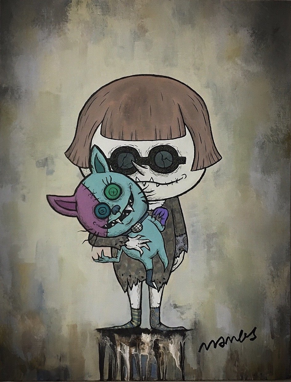そういう何とも言えないものを絵にしていたときに、ひとりぼっちで不器用で、笑うのが下手な子を隅の方に描いていました。それが「LONELY GIRL」です。世界で一番孤独な子。人間の友達はひとりもいないけど、誰よりも繊細で純粋で、悲しい存在。言葉にするのが難しい感覚、綺麗な悪夢やインナーワールド、闇のなかの小さな希望の光。そういう、儚い「美」も描きたいと思い始めていました。
