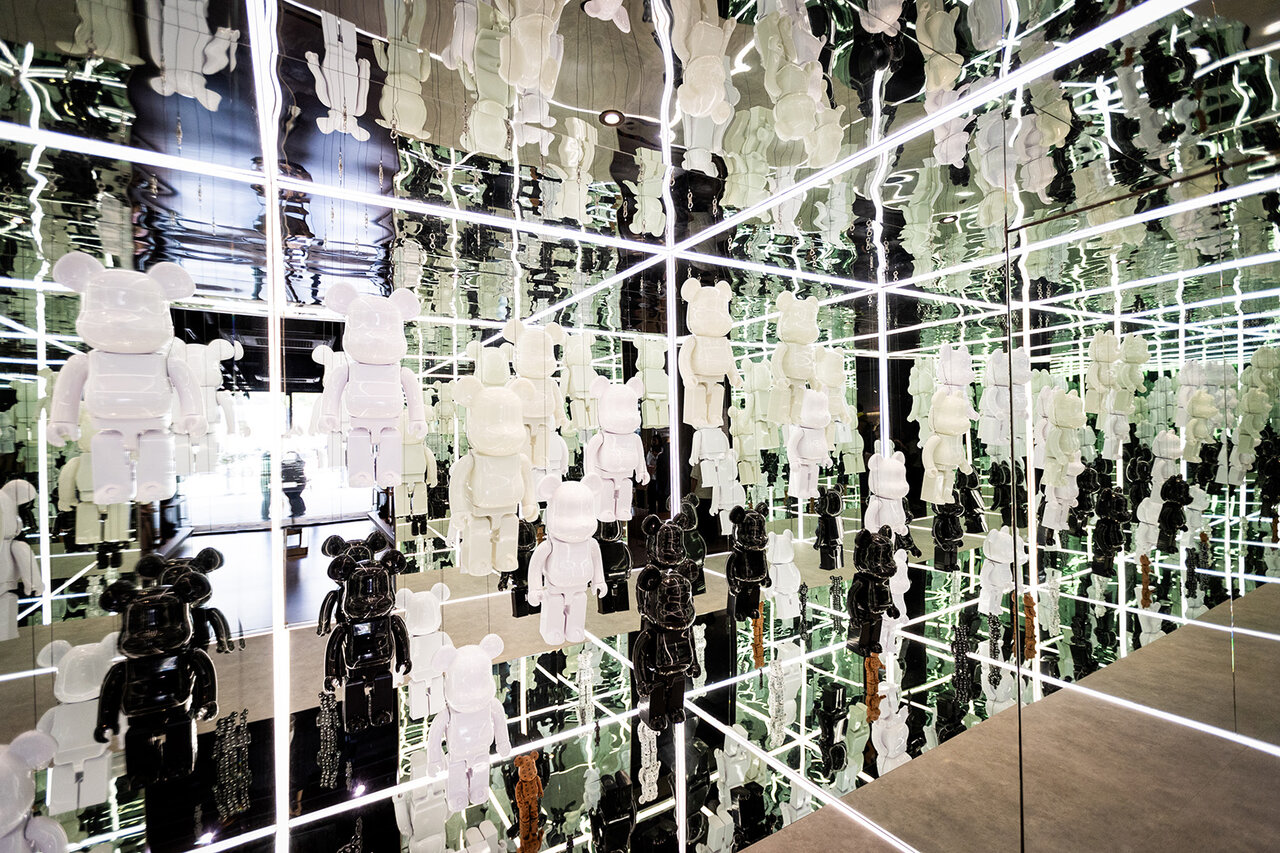 小部屋には、四方をミラーで囲んだ中にBE@RBRICKが吊るされた空間が登場。不思議な没入感があり来場者を楽しませた。