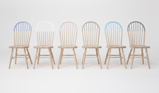 とくに佐藤オオキ氏が、老舗の曲木家具ブランド「秋田木工」の伝統のアーカイブをリ・デザインしたチェアやテーブル、スツールなど、EDITION BLUEのために作られたオリジナルモデルが人気だ。