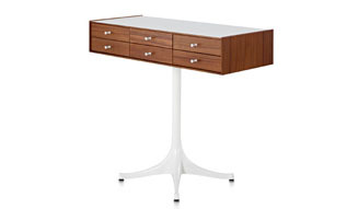 その後製造中止となったが、2005年に復刻した際に、発表当初のローズウッド材から環境に配慮したローズウッドステインのチーク材に変更。そして今回、フィニッシュの選択肢を大幅に増やしたネルソンミニチュアチェストを、「ジョージ・ネルソン展 -建築家、ライター、デザイナー、教育者」の開催に合わせて販売を開始する。