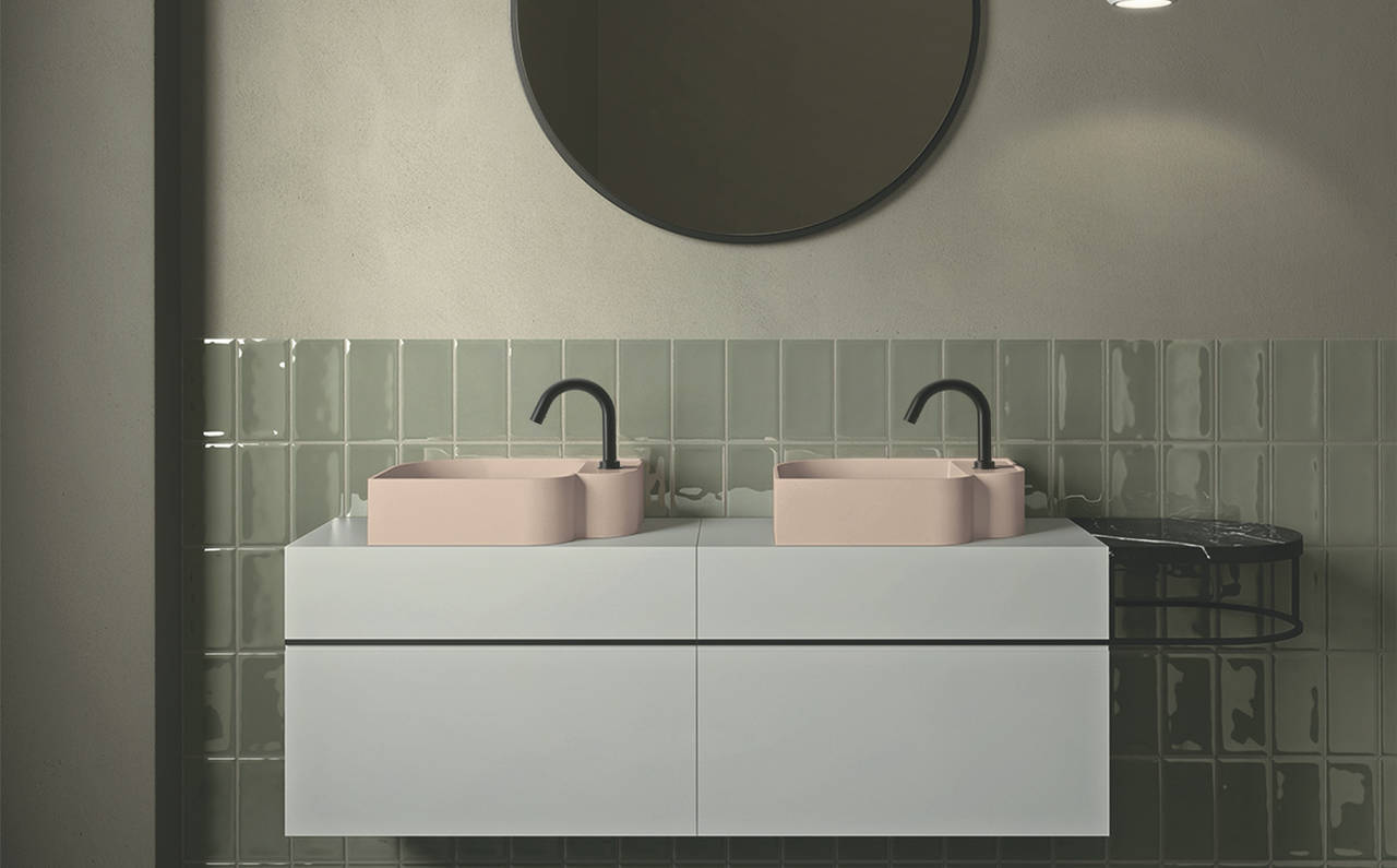 また『NOUVEAU』はアシンメトリックな置型洗面ボウル。ハイテク素材「Living Tec®」(人工大理石)を使用し、円と直線の幾何学要素で構成されたデザインはコンパクトでありながら洗練された佇まいで、ニュートラルな色合いが洗面空間を柔らかく彩る。多様な個性に応えられるデザインと色彩で洗面まわりを豊かに彩る「AQUAPiA」のラインナップから今後も目が離せない。