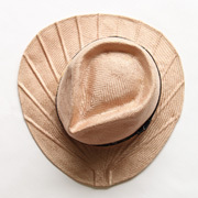 デザインスタジオ「MicroWorks」とノックの帽子屋という、まったく異なるタイプの両者によって生まれた帽子が「fanhat」。帽子を上から見ると、ツバのかたちが団扇(うちわ)のカタチという帽子と団扇の意匠が見事に融合したもので、もちろんそれぞれの機能もきちんと果たしている。あまりの暑さに帽子を取って風を起こす、“夏の無意識行為”をプロダクトに落とし込んだ「fanhat」は完全受注生産。カラーはアイボリー、ブラック、ブルー 、グリーンの4色展開。サイズはS(55センチ)からXL(59センチ)まで揃う。1万8900円