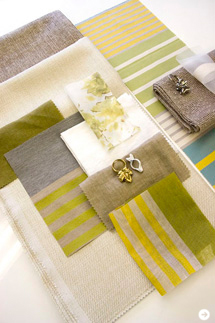 布ならではのやわらぎと優しさ、格式を醸し出しながら、カーテンだけでなく、クッションカバーやベッドスプレッド、照明、ファブリックパネルなどさまざまな用途にコーディネイトが広がっていく。
