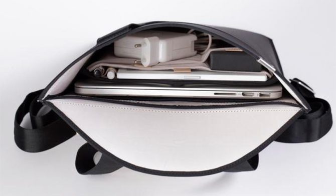 さらに注目したいのが「ムーンロック」という独自の開閉方式。ファスナーを使わず、フラップ開閉のみというアクセスの良さで、欲しいものをすぐに取り出せる。