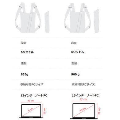 サイズは13インチもしくは15インチの2種類。シンプルゆえに、男性はもちろん、女性でも使用しやすいバックパックだ。