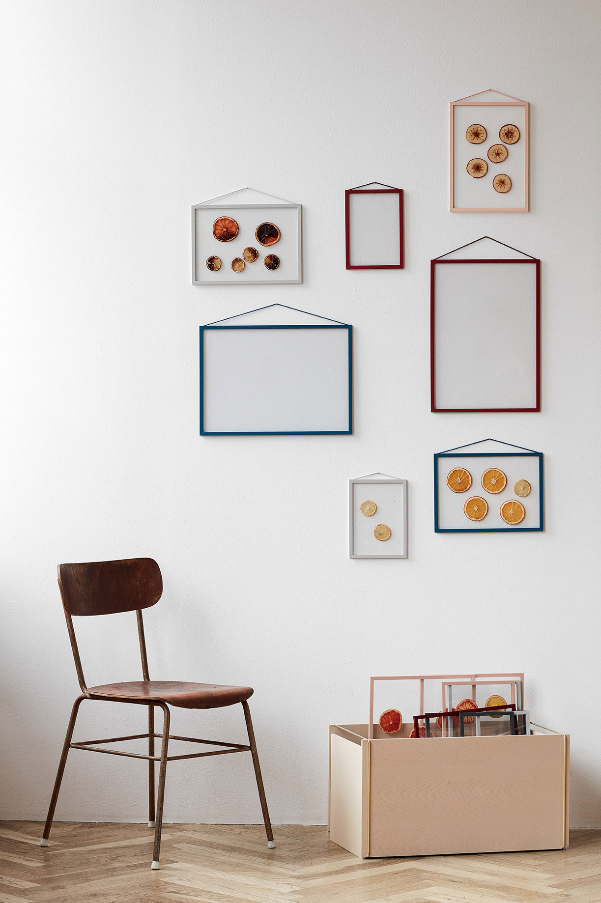シリーズの中でもミニマリズムを追求した額縁「FRAME」は、1本のラバーバンドでアクリル板2枚と枠材4本を固定するというシンプルかつ美しい構造で発売以来、人気を博している。そんな「FRAME(フレーム)」にこの度新色が登場。新たに加わったのは ディープレッド、ペールローズ、ライトグレーなど。
