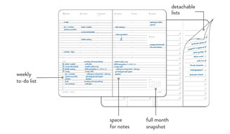 ページ下部には週間to-doリスト、メモスペース、月間カレンダーが備えられていて、アドレス帳、各種ステッカー付き。Largeサイズは3150円で発売される。