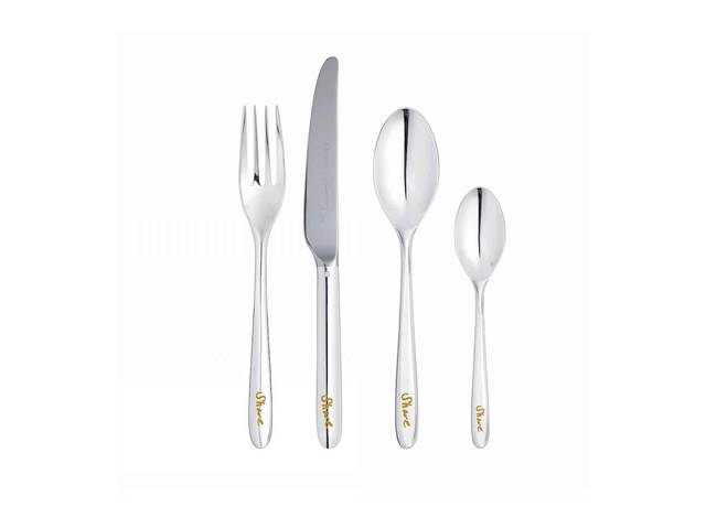「MOOD」特別限定版カトラリーセットと、デミタススプーンの入った「MOOD Coffee」の特別限定版はどちらもシリアルナンバー入り。カトラリーの柄にファレルの筆跡で刻まれた“Share シェア”の文字はコレクションの象徴と言えるだろう。