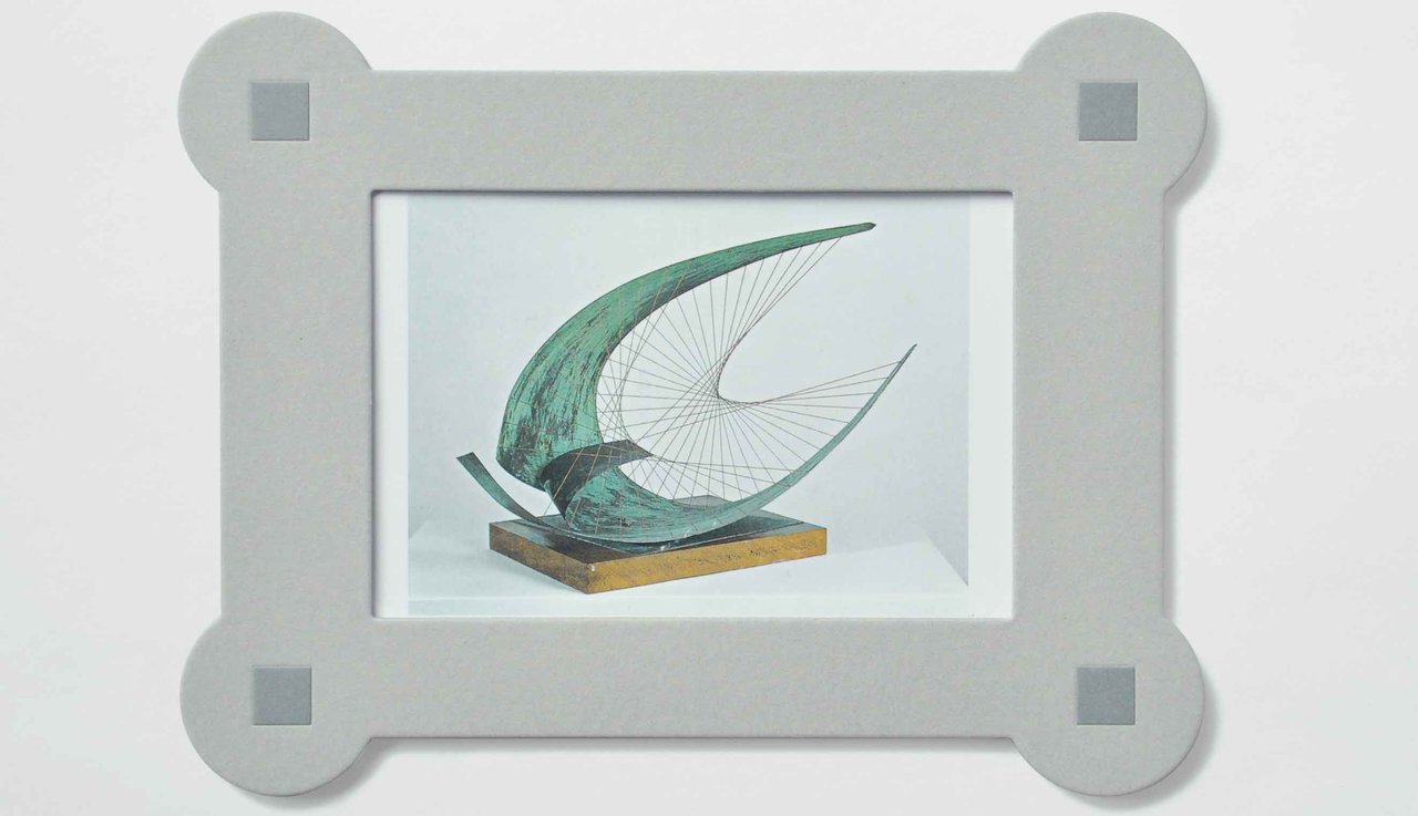 この作品集の中に登場する、楽し気なフォルムの額が飾られているリビングがあり、眠っているポストカードをこんなふうに飾れたらと思ったのが製作のはじまりなのだそう。