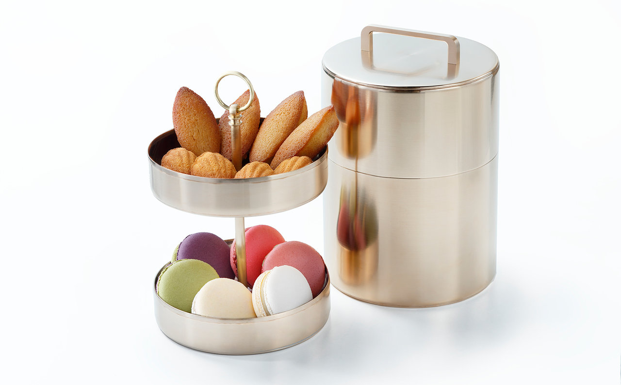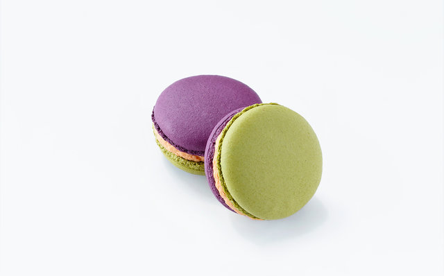 『HOSOO LOUNGE』のマカロンは、平安時代に公家文化から生まれた女性のきものの配色美である「かさね色目」をテーマにしている。