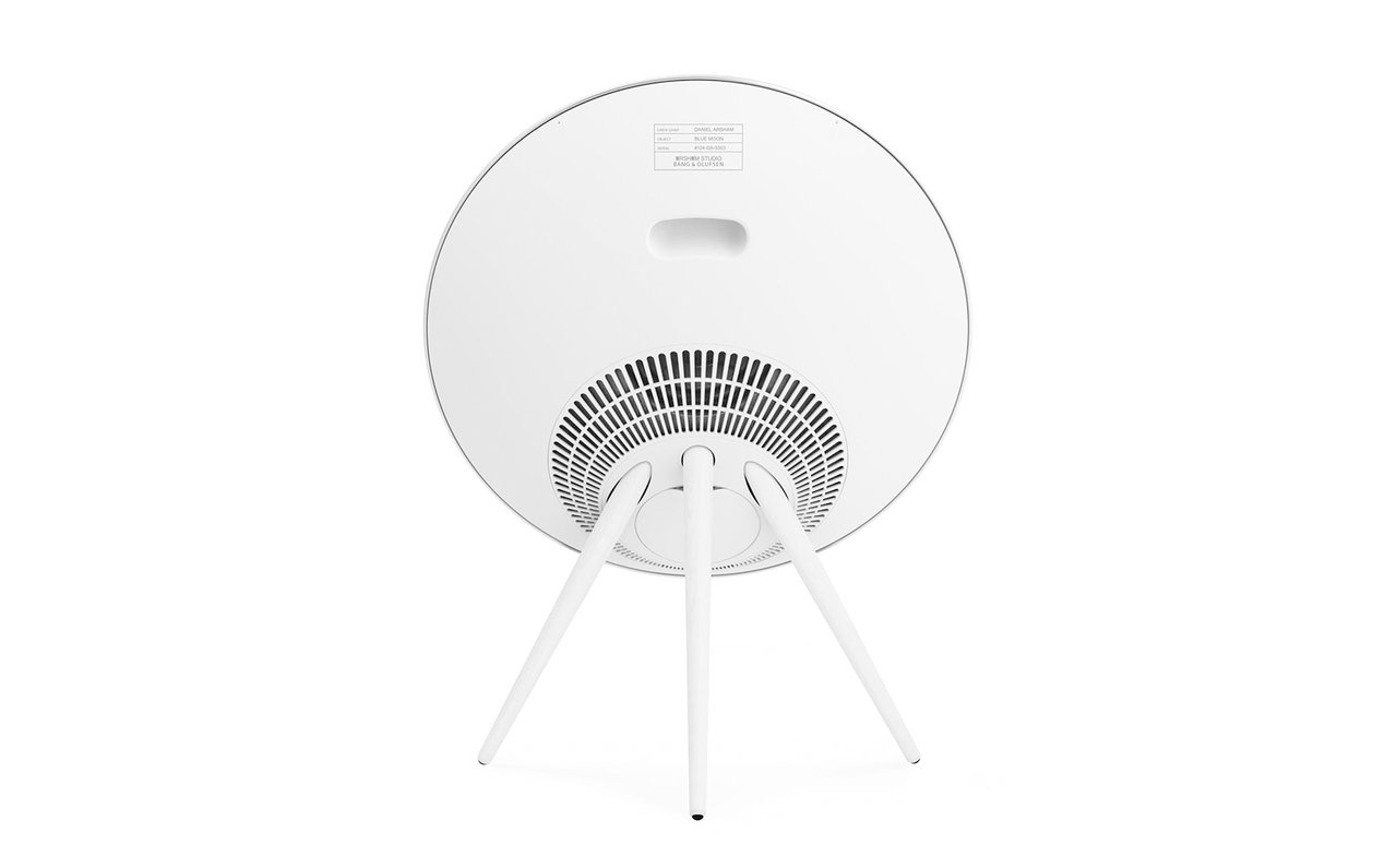 月の画像は、彼の宇宙と未来への魅力を表しており、Beoplay A9 のデザインにシームレスに落とし込まれた。またこのモデルの為に特別なホワイト色のオーク製スタンド脚とアルマイト加工が施されたシルバートーンのアルミニウムリングが採用されている。