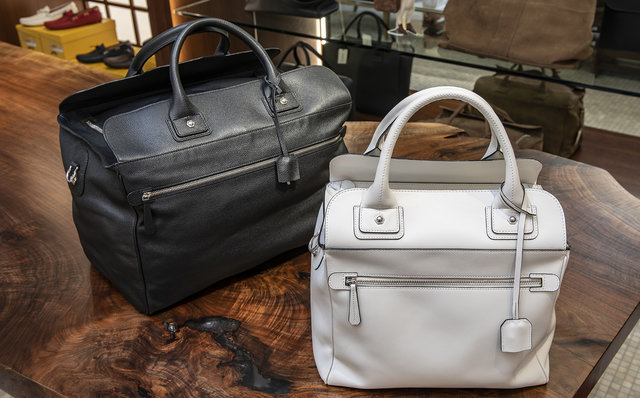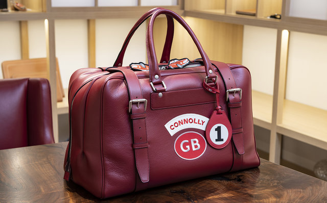 コノリーレザーを使ったモータースポーツをイメージさせるレザーヘルメット、ゴーグル、レザーグローブが揃う「ドライビング・コレクション」をはじめ、ブリーフケースやウォレット、トラベルグッズをはじめとしたレザーグッズ、ウェアなどが展開される。