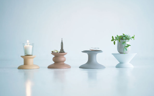 種類は4種類でそれぞれがランダムな高さで上下の面の大きさも異なる。上下を逆さにして使ったり、組み合わせる楽しみもある。ミニマルであえて存在感をなくしたデザインは、現代の生活のさまざまなモノに溶け込む。