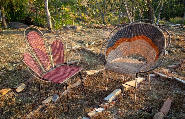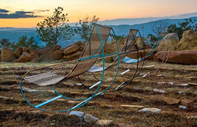 シェーズロング、椅子、ベンチ、ロッキングチェア、スツール、そしてレジン製のトレイやボール紙製のフルーツバスケットといったテーブルウェアがラインナップされている。