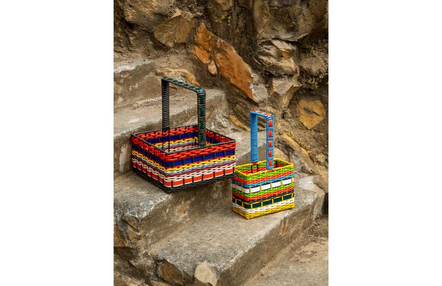 アイテムは天然素材やリサイクルおPVCを使用したハンドメイド。マルニが長年にわたってコラボレーションをし続けているコロンビアの職人たちが作り上げた一点ものだ。