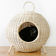 動物との暮らしを自分らしいスタイルで楽しめることをコンセプトに、洋服やインテリアと同じ感覚で選べるペットグッズを展開している「FLAVOR.」。同ブランドでロングセラーを続けている「CAT HOUSE」が、より強度を増した作りへとリニューアル。猫が気持ちよく過ごせる空間を演出する。丸いボールのような宇宙船をイメージしたデザインは、スタッキング付きのため安定性も抜群。トップ部分にはハンドルも付属しているため、移動時もラク。猫だけでなく小型犬種にもおすすめだ。ラタン製。D45×H45cm。1万9740円