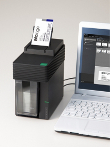 「ビズレージ」はデータ化した名刺をそのまま保存できる、スキャナ付きのデジタル名刺ボックス。給紙トレイに名刺をセットしてボタンを押すだけで、一度に約15枚(目安)の名刺を連続でスキャンし、そのデータをパソコンに転送してくれる。本体内のメモリにスキャンしたデータを一時保存できるので、パソコンとすぐに接続できない場合や、接続したパソコンが起動していない場合でもスキャンができるのがありがたい。