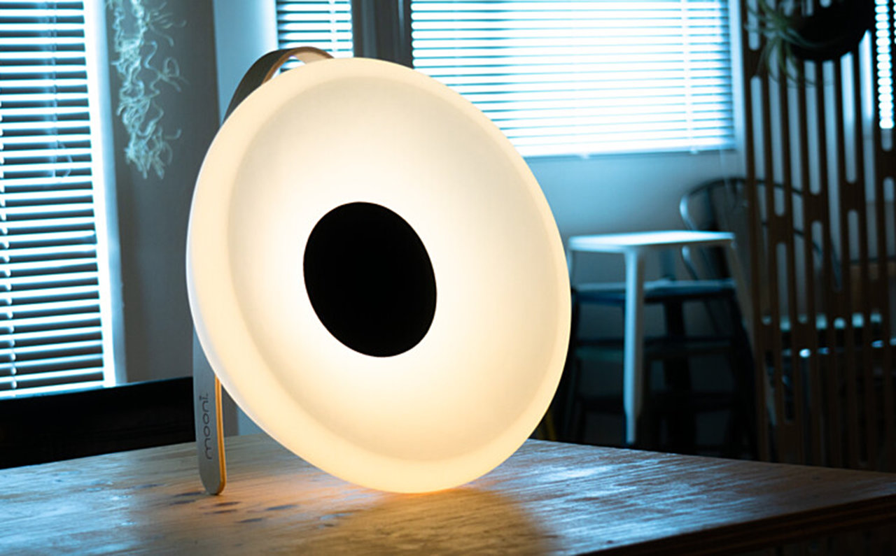 「mooni」はあたたかな光はもちろん、9色のLEDカラーから自分の好きな色を選ぶことも。またゆっくり変化させるなど、点灯パターンも4つのモードからセレクトできる。