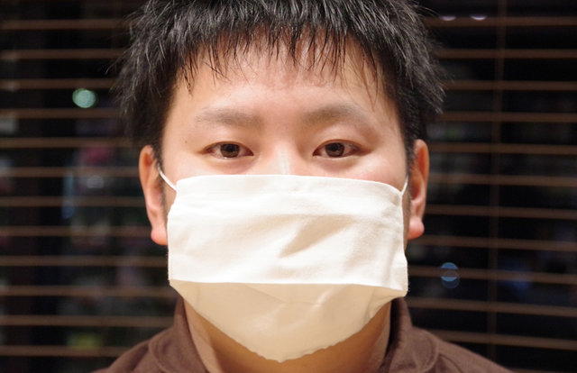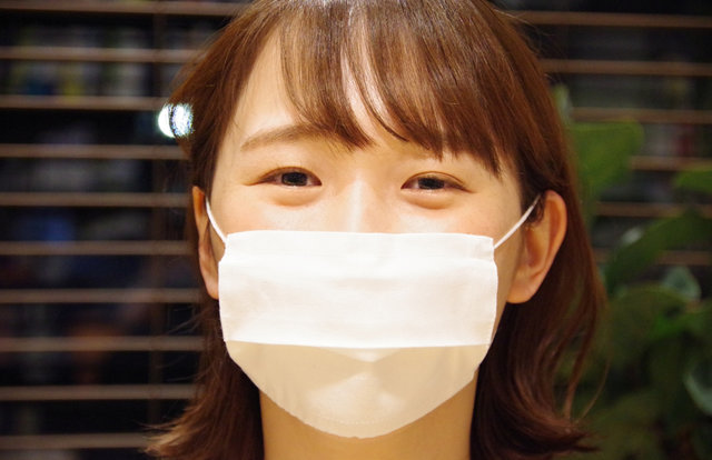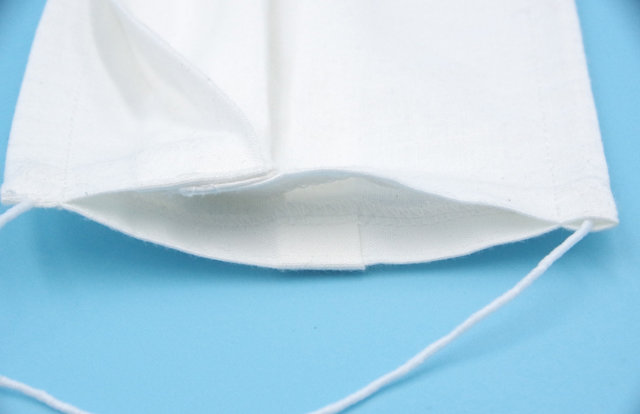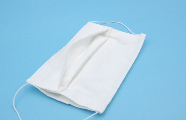 大きさは、大人用と、子ども用または顔が小さい人用の2種類。素材は、綿100パーセントのガーゼより目が詰まった生地で適度な張りと通気性を持つ、マスクに向いた布を使用している。