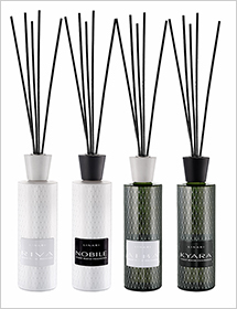 世界のトップパフューマーが香りを手がけた唯一無二のルームフレグランスは、全4種類。シトラスとグリーンティを調合した「ノービル」は、シンプルで清潔感溢れるジャポニズムを象徴するような香り。「キアラ」は、ウッディアロマティックな香りが心の深部までをもリラックスした気分に誘ってくれる。