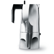 シシリア出身の建築家、マリオ・トリマルキがデザインしたエスプレッソメーカー「オッシディアーナ(イタリア語で黒曜石の意)」。かつて火山岩の一種である黒曜石が、カフェモカ用のポットに用いられたという逸話が本製品のコンセプトに反映されている。一見、ランダムに削り取ったように見える光沢のあるアルミニウムボディは、人間工学に基づき設計。本体をひねりながら開閉するとき、手にしっかりとフィットするような使い勝手を考えたデザインとなっている。1カップ用8000円、3カップ用1万円、6カップ用1万3000円(すべて税抜)