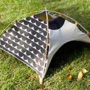 今年5月、鞄や椅子などを制作するレーベル「41世紀」が発表し、瞬く間に猫好きを虜にした「#catstudyhouse」。竹の骨組みを丈夫な帆布が包み、上部、側面と開放的でありながら、猫や小型犬がほどよくリラックスできる秀逸なテントは、指だけで持ち上げられるほど超軽量。飼い主としても、目が届きやすい所に置くことができるので安心だ。このたび、デザイナーの神山隆二氏とコラボレーションしたモデルが発売。神山氏が描く有機的なパターンはインテリアのアクセントに。サイズは2種類。1万5800円、1万8800円(税抜)