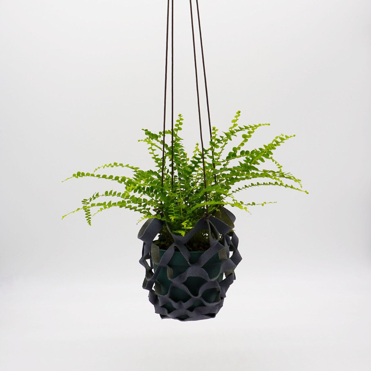 3~4号の鉢がぴったりなサイズ感に、カラーは端材のためさまざま。天井から植物を吊すことで、空間のコーディネートもより楽しくなるだろう。