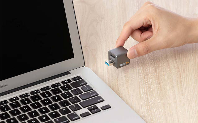 小型で持ち運びに便利な本体は、PCやMacに接続すれば、そのままMicro SDカードリーダーにも。最大512GBのMicro SDカードをサポートしているため、MacやPCにも簡単にデータ移行もできる。