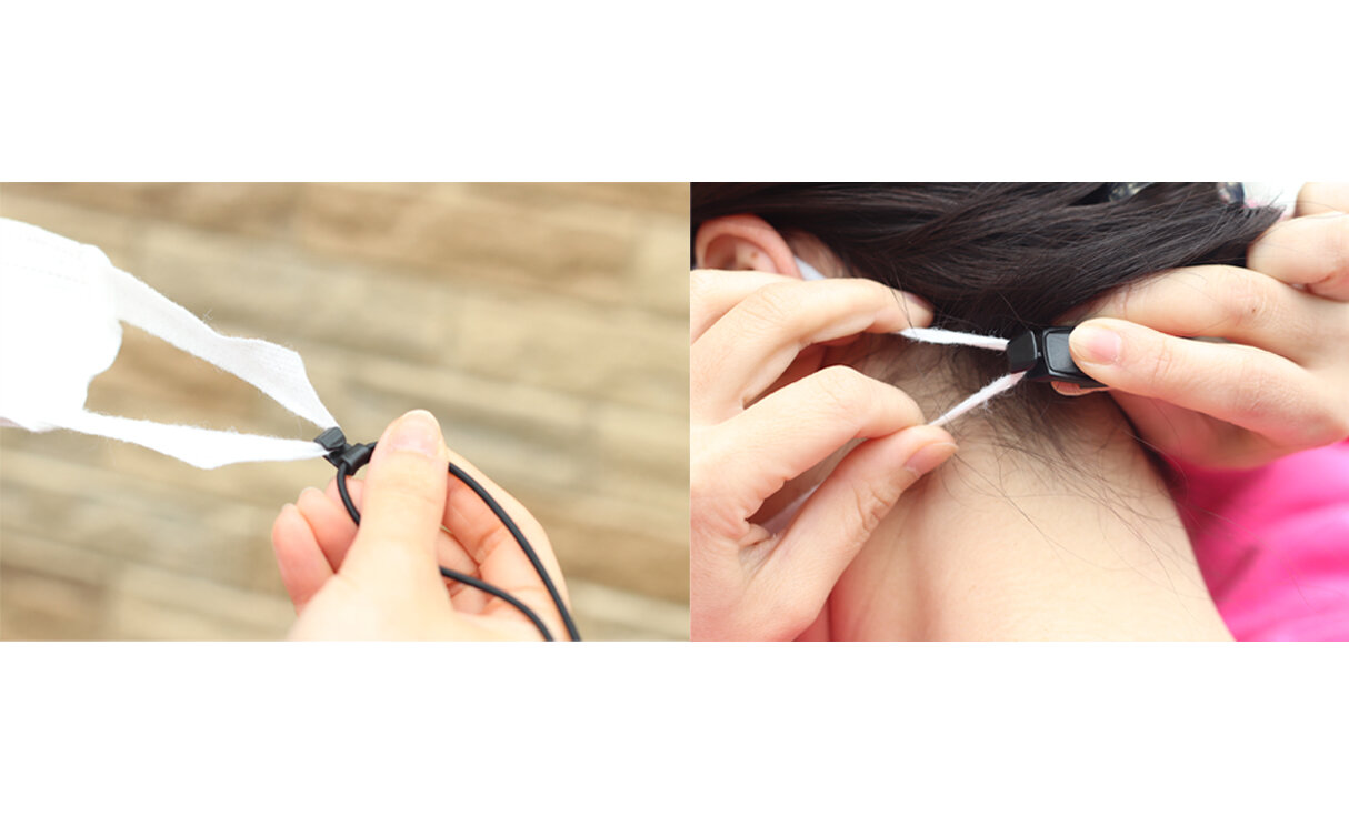 耳に掛けず頭の後ろで調整する新発想のマスク用ストラップ