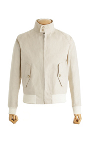 スウィングトップ型のブルゾンは今シーズンの新モデル。袖口と裾にほどされたリブやアンブレラヨークなど、スポーティーなディテールが特徴。ハリ感のあるゴム引き素材が、シャープなシルエットを描く。コットン100%ゴム引き。ベージュ。8万9250円