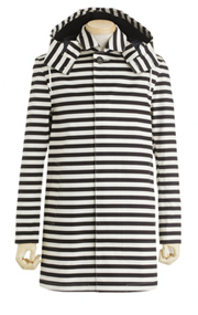 ベストセラーのDUNOONにデタッチャブルフードがついた新モデル。大胆なボーダーストライプは、トレンドのマリンテイストを取り入れたエディフィス エクスクルーシブ モデル。サテンをゴム引きしたファブリックは、艶やかな印象。コットン100%ゴム引き。ネイビー×アイボリーストライプ。15万150円