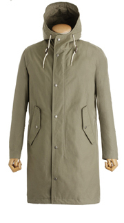 フィッシュテールやジップフライ、フラップポケットなど、本格的なミリタリーディテールのモッズコート。撥水性のある高密度コットンを使用し、レインコートとしても活躍し重宝する1着。コットン100%。ライトカーキ。9万3450円