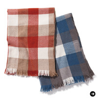 もしくは、少し肌寒さを感じたときに気軽に羽織れるようなスロー。しかも見た目にもあたたかさを感じさせてくれるもの。ウールとカシミアをブレンドすることで、クリスマスシーズンにぴったりな深みのあるリッチな色合いを実現したマーガレット・ハウエル ハウスホールドグッズのチェックスローは、自分用と相手用と、ペアで贈りあうのも楽しい。