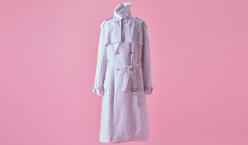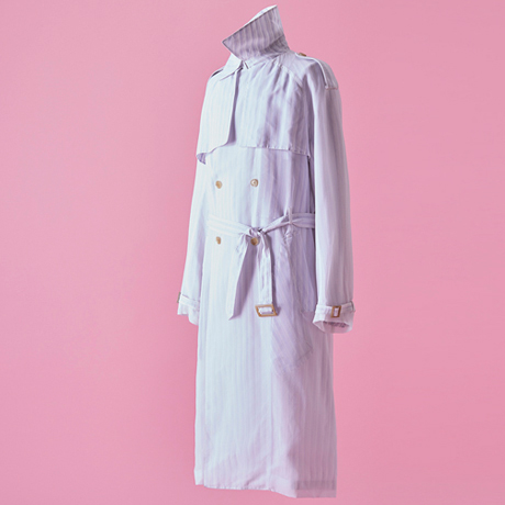 オーセンティックなトレンチコートは、オーガンジーの表地から裏地のストライプが透けて見える繊細な仕立て。驚くほどの軽さとほのかな透け感も新鮮で、見慣れたアイテムがぐっとエレガントに見える逸品。